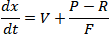 其中:P為驅動力矩,R為負載力矩,V為設定轉速,實際轉速為dx/dt,F為反饋增益系數,t為時間,穩態時的速度為:
