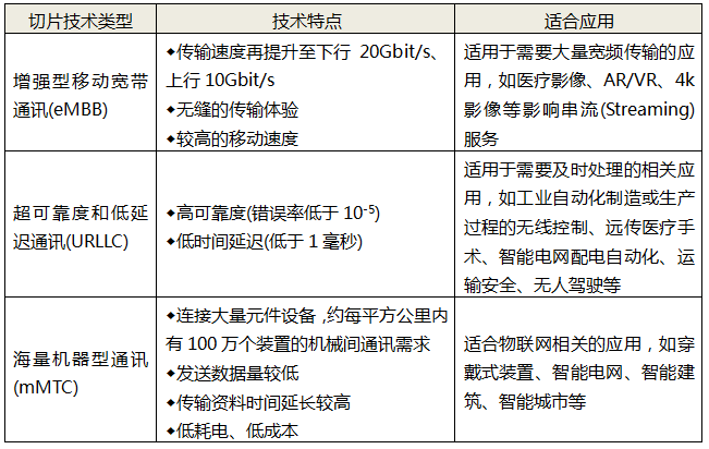 5G系統定義了三大主要切片技術類型,如表1,包含eMBB(Enhanced Mobile Broadband)、URLLC(Ultra-reliable and Low Latency Communications)、mMTC(Massive Machine Type Communications)等應用,可分別滿足智能電網各種電力業務應用需求,其中5G網絡切片技術可用來承載智能電網多樣化業務,以提供電力系統各種不同需求的應用服務。電力網絡由傳統的輸/配/變電等系統轉化成智能電網,為了能達到有效管理小型分散的能源系統、安全高效能的輸變電、靈活的配電、多樣的用電型態等,電力信息通訊網絡勢必扮演重要腳色,而整個電力系統有這各類型的能源服務應用,而每一種應用有其適合的網絡特性。5G的網絡切片技術可容納不同傳輸等級的應用于同一基站中實現,因此不管是需要大帶寬的影像監控應用或小帶寬低延遲的配電管理等,皆可支應其各應用不同的特點與需求。以下針對幾個電力系統發展中的應用來探討網絡需求與5G可扮演的腳色: