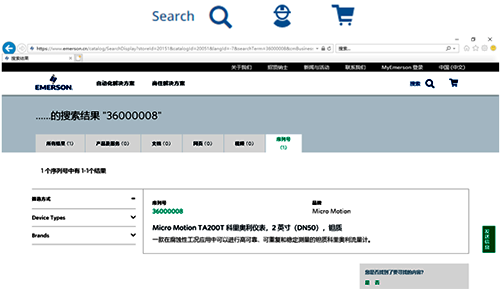 首先,可以在艾默生官網(wǎng)的搜索欄中,輸入產(chǎn)品銘牌上的序列號(hào)。在瀏覽器中就會(huì)清晰地展示此產(chǎn)品的型號(hào),口徑,材質(zhì)和應(yīng)用場(chǎng)景。