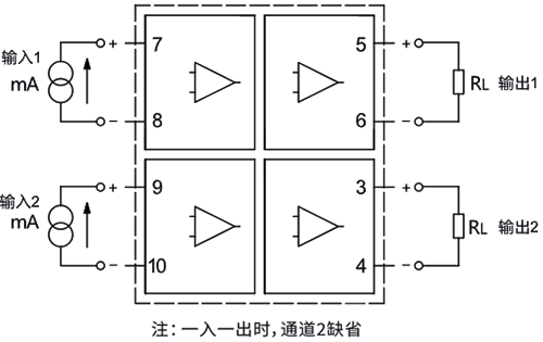 1、一入一出/二入二出輸入側獲取能量無源信號隔離器接線圖