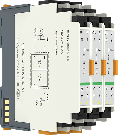 一入一出兩線制交流電流變送器,輸出側獲取能量無源交流信號隔離器,1路輸入0-5AAC電流信號,1路二線制輸出4-20mA