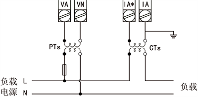 ①單相兩線系統(tǒng),采用無PT,無CT方式的接線圖