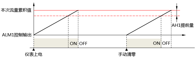 1、流量定量控制儀的第一報(bào)警(AL1)流量定量控制輸出時(shí)序圖