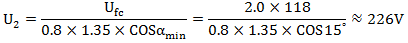 Ufd-min=1.35×UL×cos150°=1.35×240×(-0.866)≈-280V