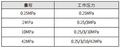 額定工作壓力分為:0.25MPa、3MPa、10MPa、42MPa四檔