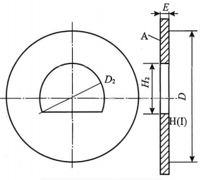 圓缺孔板開(kāi)孔為一個(gè)圓的一部分(圓缺部分),這個(gè)圓的直徑是管道直徑的98%,開(kāi)孔的圓弧部分的圓心應(yīng)精確定位,使其與管道同心。這樣可保證開(kāi)孔不會(huì)被管道或兩端的墊片所遮蓋。其結(jié)構(gòu)如下圖所示。采用法蘭取壓。