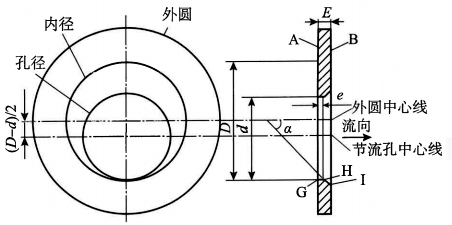 標(biāo)準(zhǔn)孔板又稱(chēng)同心直角孔板,其軸向截面如圖所示。孔板是一塊加工成圓形同心的具有銳利直角邊緣開(kāi)孔的薄板,標(biāo)準(zhǔn)孔板有三種取壓方式:法蘭、角接和徑距取壓。