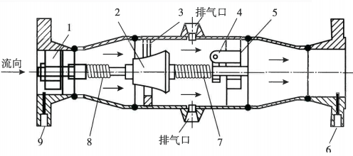 線(xiàn)性孔板又稱(chēng)變壓頭變面積孔板,其結(jié)構(gòu)如下圖.所示。線(xiàn)性孔板是一種孔隙面積隨流量大小自動(dòng)變化的節(jié)流件。曲面圓錐形塞子在流體形成差壓和彈簧的作用下來(lái)回移動(dòng)。造成孔板孔隙變動(dòng),使輸出差壓與流量成呈線(xiàn)性關(guān)系,大幅提高范圍度。