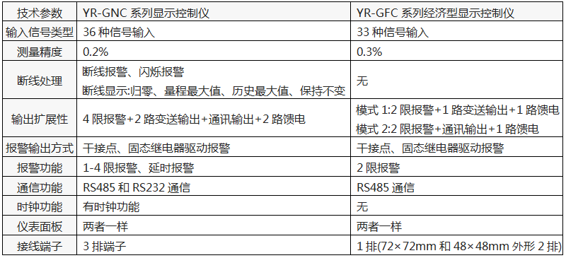 1、YR-GFC系列精度為0.3%FS,是YR-GNC系列0.2%精度顯示控制儀精簡(jiǎn)版本