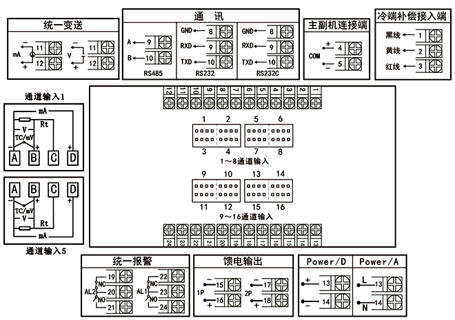⑤分別報警輸出≤16限+分別變送輸出≤8路