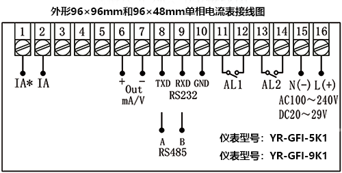 單相電流表型號:YR-GFI-9K1C1M-N2-N-T