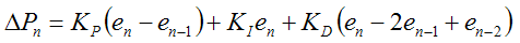 公式中:△Pn為第n次控制器輸出對(duì)前次控制器輸出的增量;en為第n次采樣的偏差;KI為積分系數(shù),TS為采樣周期;KD為微分系數(shù)