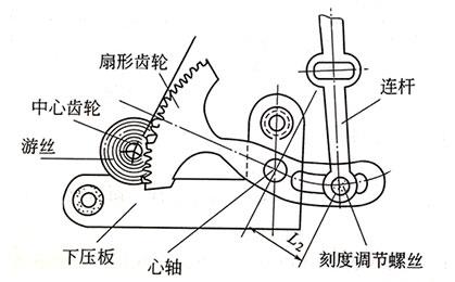 刻度誤差的調整可參考圖2-彈簧管壓力表傳動機構示意圖進行。未加壓時把指針固定在零點處,具體操作按以上“①指針安裝技能”的方法進行。然后加壓至上限壓力值,可松開刻度調節螺釘來調整L2的長短,使指針指示到上限刻度線上。通過重復調整,使零點和上限刻度均達到要求為止。
