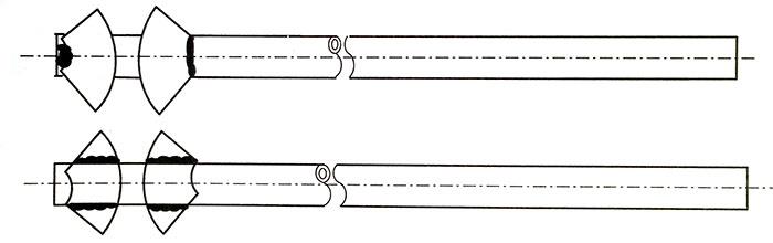 在儀表維修中,會涉及到儀表導(dǎo)壓管及電氣保護(hù)管的敷設(shè)工作,盡管工作量不會太多,仍會遇到鋼管的冷彎加工,鋼管的冷彎制就需要彎管器。對于工作量不大或一些小型企業(yè),專門購置電動、機(jī)械的彎管器并不劃算,如果能自己動手制作一副彎管器是很方便且實用的。現(xiàn)介紹一種手工彎管器的制作方法,先按圖1加工好滑輪,然后按圖中的垂直線將滑輪鋸割為四塊,把鋸下的四塊鐵分別焊接在兩根鋼管上,如圖2所示,一個滑輪可以制作一副彎管器。焊接時拿一截對應(yīng)直徑的鋼管比著焊兩鐵塊的間距,這樣焊好后空隙比較合適,如果空隙小了,無法從側(cè)面放到要彎制的管子上,操作起來不方便。圖中加工序號1制作的彎管器可用來彎1/2in的水煤氣管,鋸割的鐵塊焊接在1in的鋼管上,鋼管長度為1.2m左右。用加工序號2制作的彎管器可用來彎Ф14的導(dǎo)壓管,鋸割的鐵塊焊接在1/2in的鋼管上,鋼管長度為lm左右。