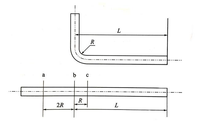 用手工彎管器彎鋼管時,先在鋼管需要彎曲處劃上記號,然后把彎管器套在被彎制的鋼管上,彎管器要分別放在被彎制鋼管的兩側(cè),如圖3所示。彎管時需要兩個人共同操作,其中一個人使用2號彎管器,作用是固定被彎管,另一個人使用1號彎管器,由其來進(jìn)行彎管,兩人的用力方向正好相反,如圖3中的箭頭所示。彎制質(zhì)量取決于操作1號彎管器的人,如要彎制圖3所示的直角彎時,2號彎管器固定在c處不動,1號彎管器從a處用力向箭頭方向彎動,并逐漸向b端移動,直至彎成直角彎,這樣還可保證L的尺寸。鋼管彎制時要一次彎成,管子彎曲后,應(yīng)檢查有無裂紋和凹陷處。儀表管的彎曲半徑在《GB 50093-2013 自動化儀表工程施工及驗收規(guī)范》有規(guī)定,即“高壓鋼管的彎曲半徑宜大于管子外徑的5倍,其他金屬管的彎曲半徑宜大于管子外徑的3.5倍,塑料管的彎曲半徑宜大于管子外徑的4.5倍”。