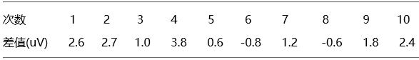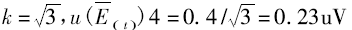 由掃描開關(guān)說明書中技術(shù)指標(biāo)可知轉(zhuǎn)換開關(guān)的寄生熱電勢(shì)不超過±0.4uV,區(qū)間半寬度a=0.4uV在區(qū)間內(nèi)可服從均勻分布k=根號(hào)3,