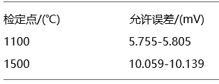1、測(cè)量對(duì)象被檢偶為二等標(biāo)準(zhǔn)鉑銠30-鉑銠6熱電偶,其檢定點(diǎn)及熱電動(dòng)勢(shì)值的最大允許誤差如表1所示: