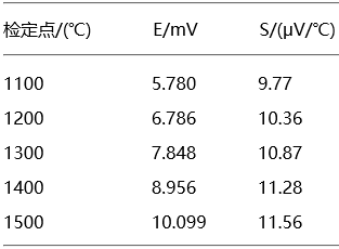 鉑銠30-鉑銠6熱電偶各檢定點(diǎn)的熱電勢(shì)值和微分熱電動(dòng)勢(shì)值如表2所示: