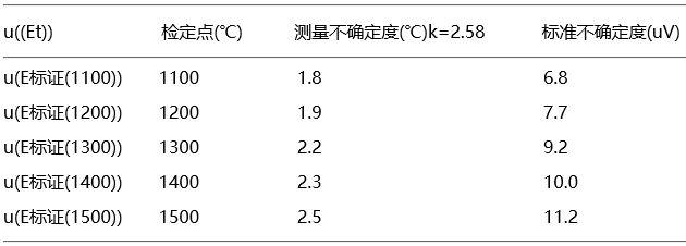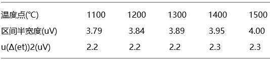 表4 一等標(biāo)準(zhǔn)鉑銠30-鉑銠6熱電偶引入的不確定度