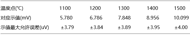 表1 熱電動(dòng)勢(shì)值最大允差表