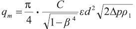 公式中:qm為質量流量,kg/h;C為流出系數;β為直徑比β=d/D;D為管道直徑,mm;ε為可膨脹系數;d為開孔直徑,mm;Δp為差壓,kPa;ρ1為節流件正端取壓口平面上的流體密度,kg/m3。