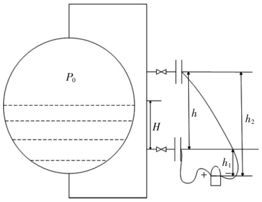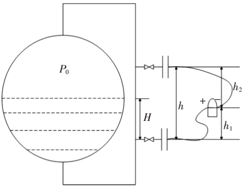 圖2 雙法蘭差壓變送器安裝在密閉容器兩個(gè)法蘭之間