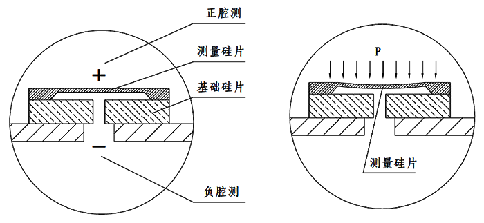圖3 硅傳感器結構圖 圖4 膜片受壓示意圖