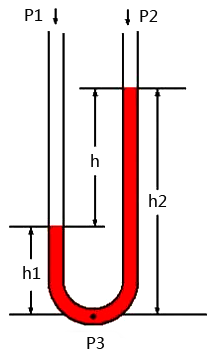 P2=P1-ρ×g×(h2-h1)=P1-ρ×g×h