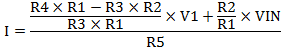 當負載增加時,導致V4增大,根據公式(6)V4增大導致V1增大。根據公式(8)可知,當R4×R1>R3×R2時,輸出電流I隨著負載增加而增大。同理,當R4×R1<R3×R2時,輸出電流I隨著負載增大而減小。負載的增大會導致V4增大,由于經過負載的電流為I和經過R5的電流相同,設負載的大小為N×R5,則V4=I×N×R5。