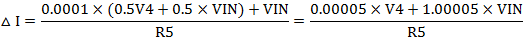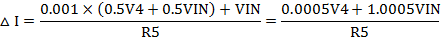根據公式(8)可以知道,當R1=R2=R3=R4時,輸出電流值I只與R5相關;當R5等于采樣電阻時,輸出電流等于輸入電流。且負載的變化對電流輸出沒有影響。當R1≠R2≠R3≠R4時,電流I與輸出電壓VIN呈非線性關系。并且當負載變化時,導致V4發生變化,根據公式(6)可知,V1會根據V4的變化而變化。