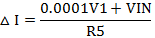 VIN在輸入電流為20mA的條件下為2V,V4的值根據負載的變化而變化,負載越大V4值越大,在輸出20mA的條件下負載為N×R5,產生的誤差為(N+1)×0.05%。根據需求負載的最大值為750Ω,故理論計算的誤差最大值為0.425%。不滿足精度要求。更換精度為0.01%的電阻條件下,由于