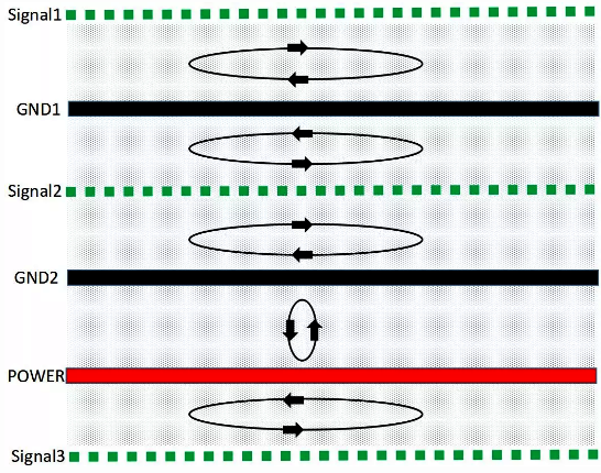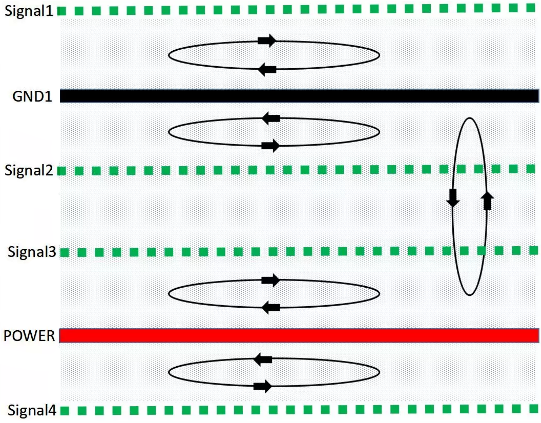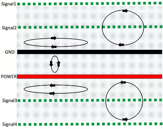 PCB疊層EMC規(guī)劃與設(shè)計思路的核心就是合理規(guī)劃信號回流路徑,盡可能減小信號從單板鏡像層的回流面積,使得磁通對消或最小化。