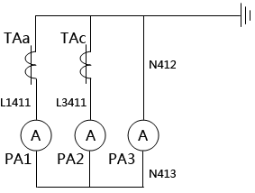 在電流測量回路中,由于電流表與電流互感器之間的串聯關系,因此,現將YR-GFE-9S4K電力數字表的三相電流端子串接在原指針式電流表與電流互感器之間。接線時,YR-GFE-9S4K電力表的電流流入與電流流出方向與原電流表的串聯方向要正確,即YR-GFE-9S4K電力數字表的電流端子5*、9*、7*為電流流入端子,6、10、8端子為電流流出端子。在多功能電力儀表YR-GFE-9S4K電流端子接線中,當電流由A相CT流出后,電流由YR-GFE-9S4K電力數字表IA5*端子流入,經過多功能儀表后由IA6端子流出,后進入指針表電流表PA1中,當電流由C相CT流出后,電流由AYR-GFE-9S4K電力電力儀表IC9*端子流入,經過多功能儀表后由IC10端子流出,后進入指針表電流表PA2中,由于此系統為兩相CT,中線電流由IB流回,B相電流由指針表PA3流出后,進入YR-GFE-9S4K電力儀表IB7*端子,經過多功能電力儀表后,電流由IB8端子流出回到地端子。