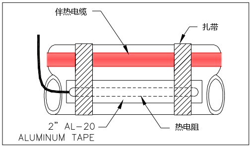 ◆雙根伴熱帶電源盒電伴熱安裝圖