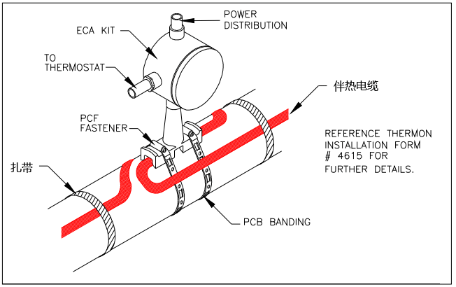 ◆單根伴熱帶電源盒電伴熱安裝圖