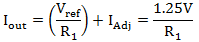 式中Vref為標稱參考電壓,為1.25V;IAdj為調節端電流;R1為編程電阻。