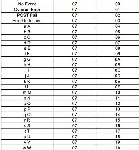 仔細查看USB的報文轉換(USB HID to PS/2 Scan Code Translation Table):