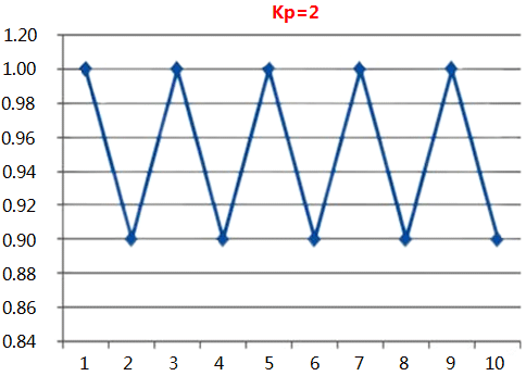 那我們繼續增大吧,我們發現系統開始震蕩了。此處使用excel折線圖,大家可以調節參數觀察變化