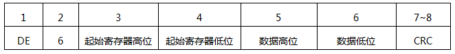 CRC:校驗字節,采用CRC-16循環冗余錯誤校驗