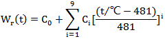 公式中,t為溫度值;Wr(t)為參考函數,在0℃~660.323℃溫區內參考函數Wr(t)的數值表見JJG160-2017標準附錄F;常數C0,Ci,D0,Di在附錄C列出。