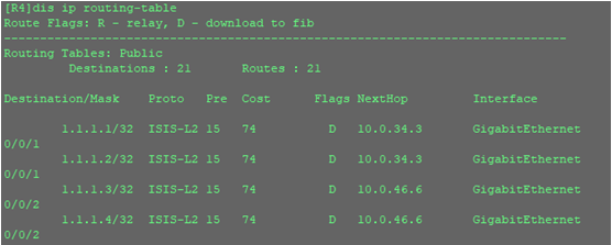 [R4-GigabitEthernet0/0/1] isis enable 1