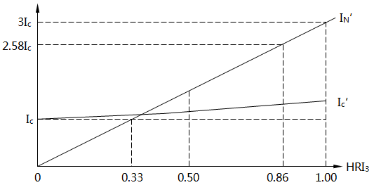 圖2 IN'和Ic'隨3次諧波含有率(HRI3)變化