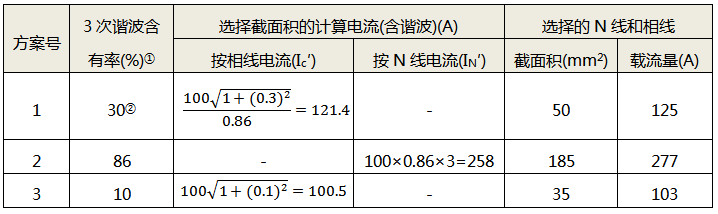 表2 照明設(shè)備存在3次諧波時(shí)導(dǎo)線截面積的選擇