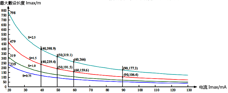 圖8 電纜最大敷設長度(220VAC供電)