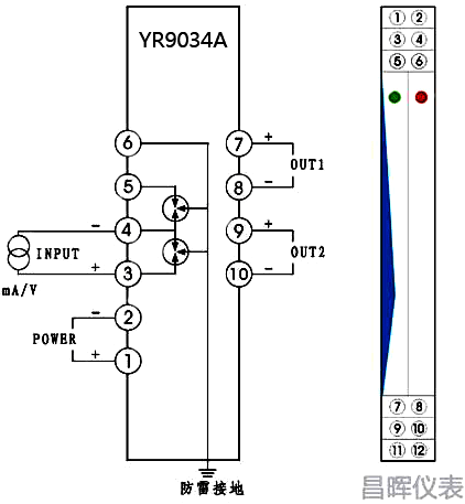 接入隔離器的4-20mA信號分為有源和無源兩類,二線制4-20mA為無源信號,三線制和四線制制4-20mA為有源信號,二線制/三線制/四線制4-20mA電流信號與隔離器的接線各不相同。本文以昌暉儀表隔離器YR9034A-0-GNNN-N為例介紹二線制/三線制/四線制4-20mA電流信號與隔離器如何接線。
