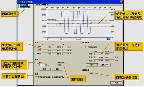 修改PID控制參數,觀察控制器及被控變量狀態,實際調試時可以利用PID整定控制面板,以圖形方式來直觀查看,并自整定PID控制參數。