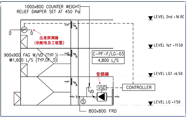 圖4 國外暖通圖紙中正壓風機控制