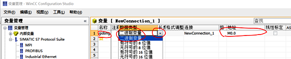 2、打開“變量管理”-右鍵“變量管理”-“gd加新的驅(qū)動程序”-“SIMATIC S7 Protocol Suite”