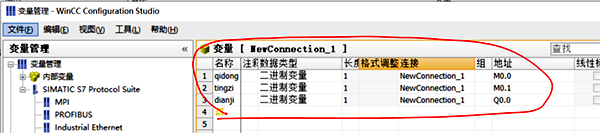 7、新建PLC程序中用到的變量“名稱”-“數(shù)據(jù)類型”-“地址”
