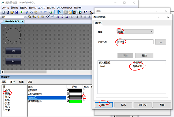 9、“顏色”-右鍵燈泡選擇“動態(tài)對話框...”-填入相關(guān)設(shè)置-“確定”